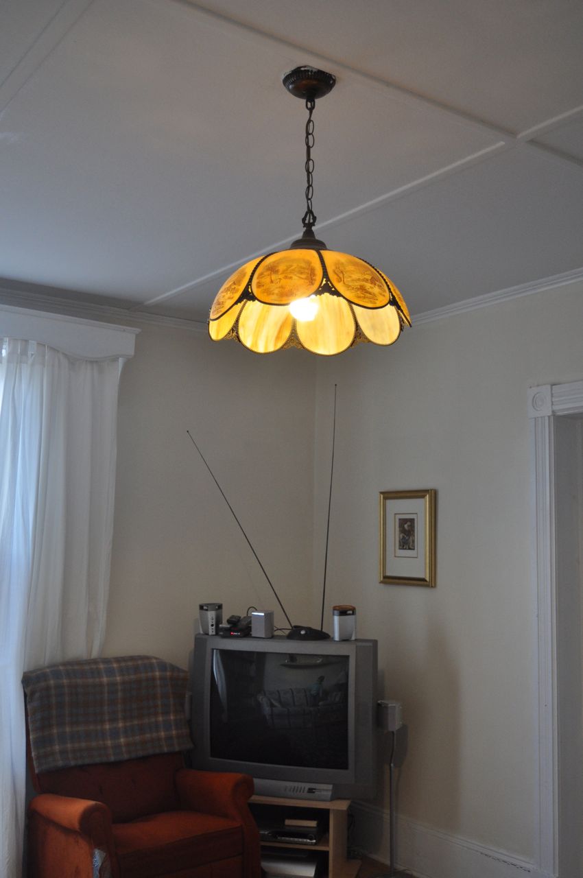 This is the light fixture in the living room. It's just not the right kind of vintage to be considered pretty in my books!